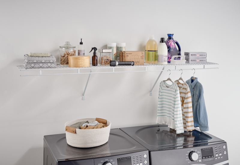 Wire shelving is another way to increase the capacity of your laundry room without relying on floor space. Plus, the ventilated shelves will help prevent your linens from getting musty.