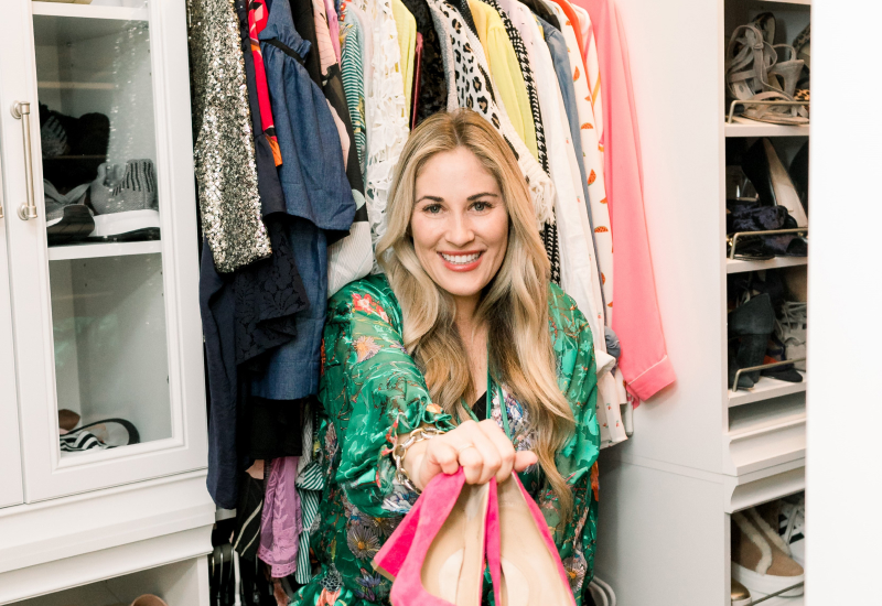 Walking in Memphis in High Heels blogger Laura showed us her overflowing master bedroom closet and we helped her create an organized space that would fit challenging angles and hold her colorful clothes.