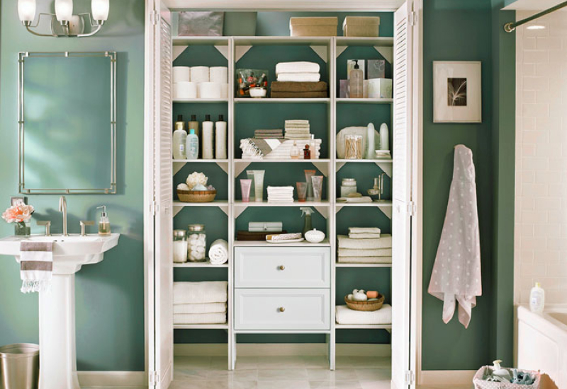 Green accent walls can be used in any room. Personalize your spaces with the shade that elevates your mood and inspires your guests. Product: ClosetMaid’s Selectives in White.