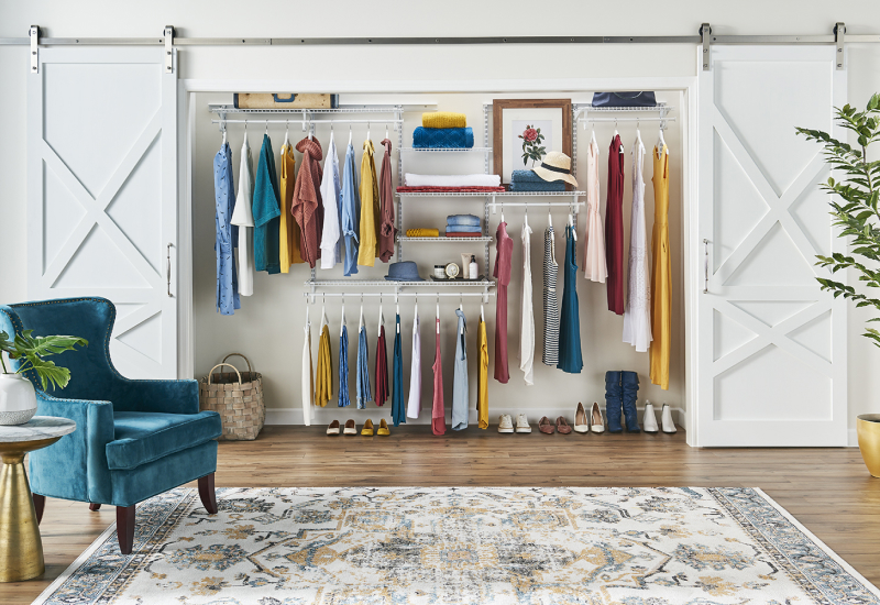 Store your clothes in a closet with our SuperSlide® all-purpose shelving. It looks and functions beautifully and is made of 91% recycled steel content.