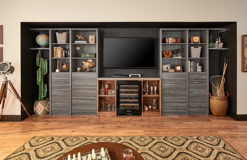 A wood storage system will give an elegant look to your space while also offering a variety of configurations to fit your space and your needs.