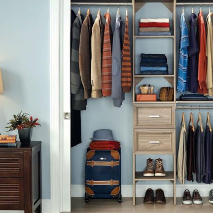 Try it in a guest room closet, entryway, kids’ room or any space where you want a combination of hang rods and shelves.